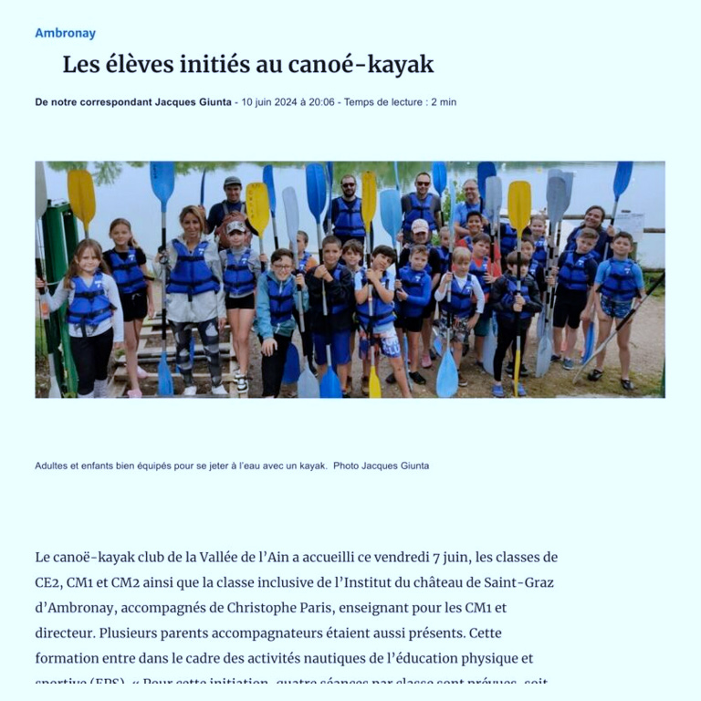 Initiation Canoë-Kayak à Ambronay : Les Écoliers à la Découverte de la Rivière d’Ain